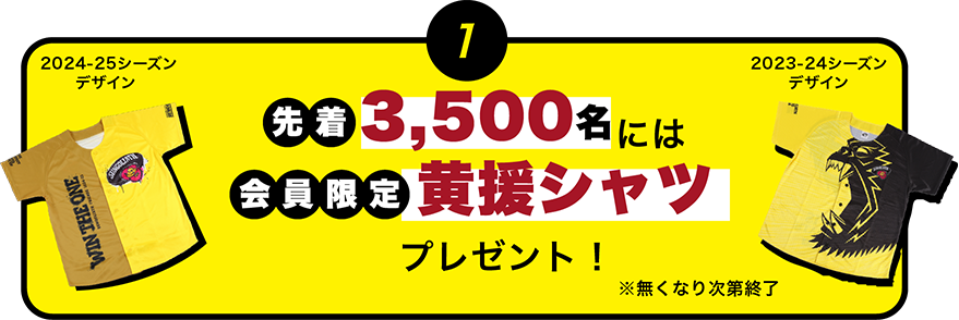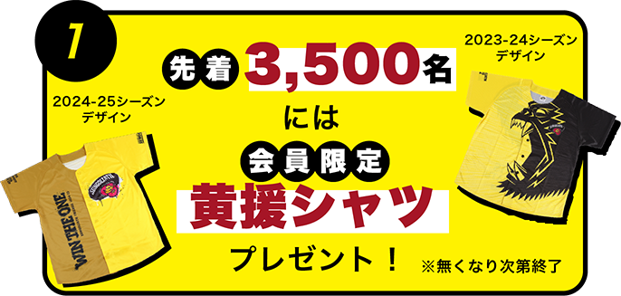 先着3,500名の方に、サンゴリアス・フレンズ会員限定デザインの黄援シャツをプレゼント!
