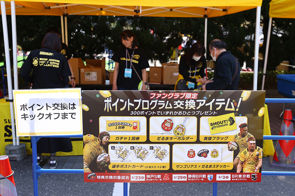 サンゴリアス・フレンズ会員であれば、どなたでも参加可能な「来場ポイントラリー」や「ガラポン」に加え、ホストゲーム会場でしか味わえない「会員限定イベント」、「サンゴリアス・フレンズデー」にご参加いただけます。